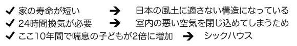 断熱性(省エネ)+耐震性・耐久性+ 健康面・調湿性(自然素材)+通気性(パッシブ通気)